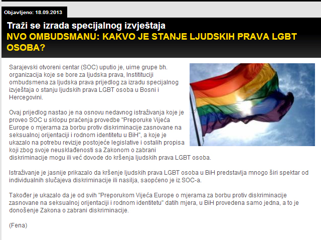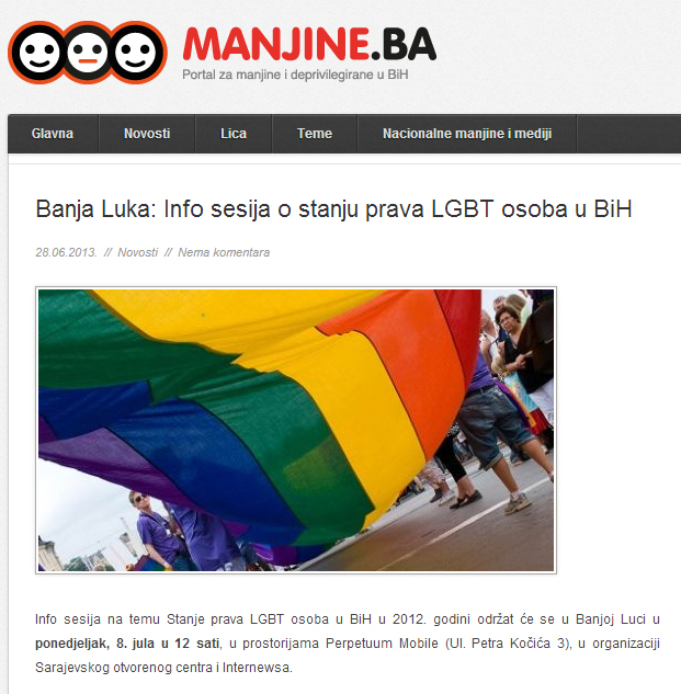 Manjine.ba, 28.06.2013. – Banja Luka: Info sesija o stanju prava LGBT osoba u BiH
