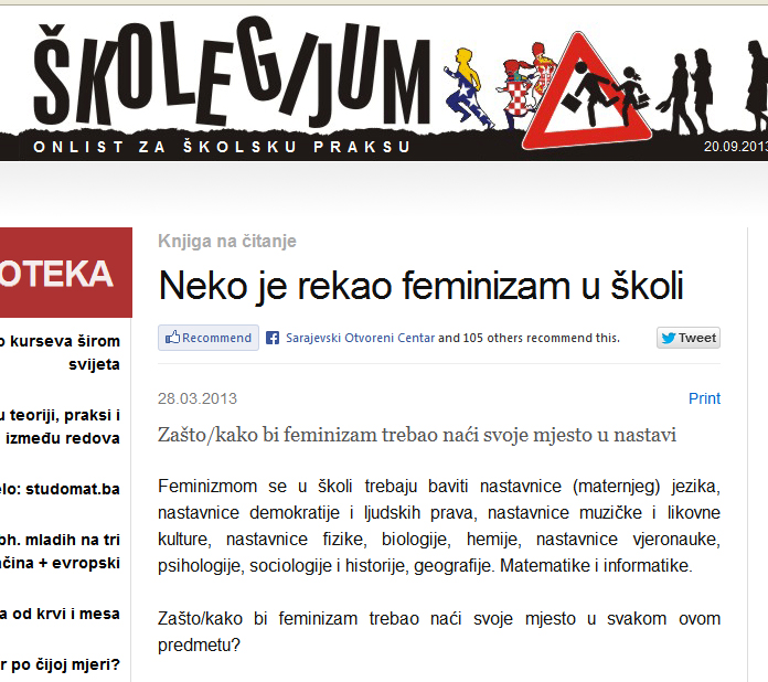 Školegijum, 28.03.2013. – Neko je rekao feminizam u školi