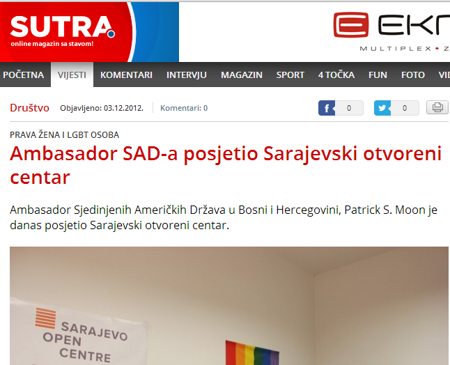 Sutra.ba, 03.12.2012. – Ambasador SAD-a posjetio Sarajevski otvoreni centar